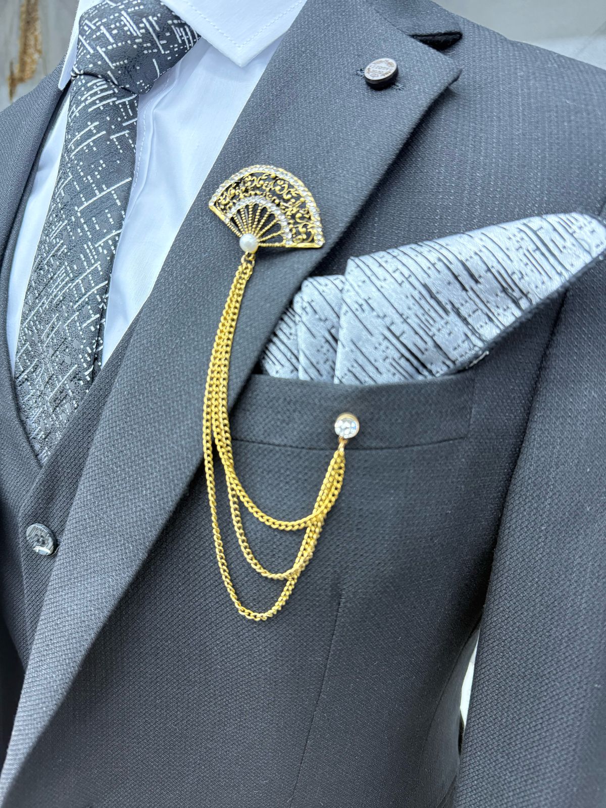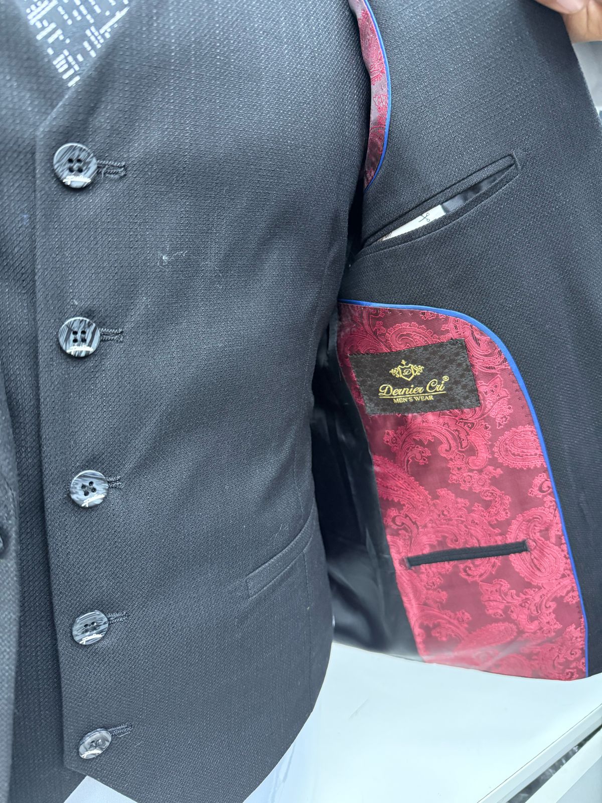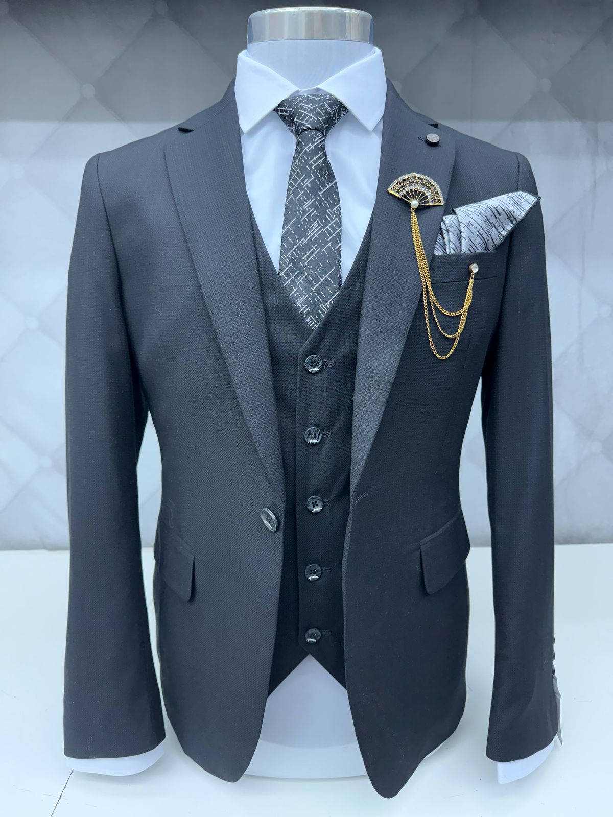 Elevate your professional style with our exquisite three-piece suit, expertly crafted to make a lasting impression. This sophisticated ensemble consists of a jacket, vest coat, and trousers, all tailored to perfection with a distinctive Turkey-style weave texture.